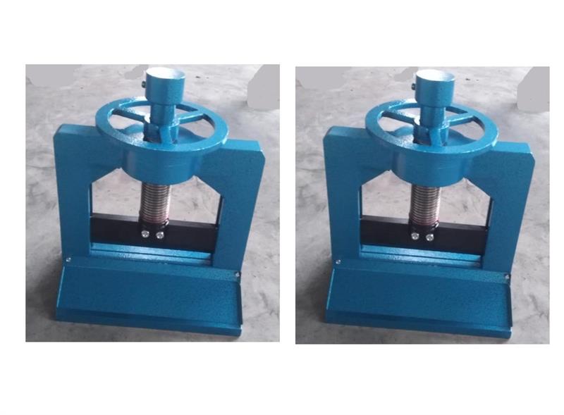 巖芯劈樣機是將較短巖心放于刀刃下,然后旋轉手柄將其巖心固定,用力旋轉大手輪,巖心被縱向從中分開沿著接樣板滑向劈樣機兩邊。此劈樣機切割巖心長度為300毫米,巖心直徑100毫米